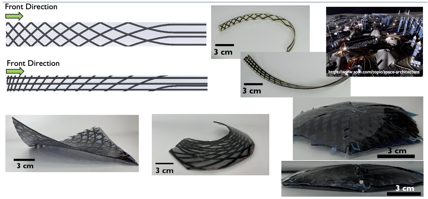 Our center addresses these challenges through integrated research on the design, manufacturing, and mechanics of morphable and multifunctional space structures. Our work spans origami structures, inflatables, ultrathin composite booms, morphogenetic composite structures, and many others—each advancing structural capabilities for adaptive space systems with enhanced performance and functionality.